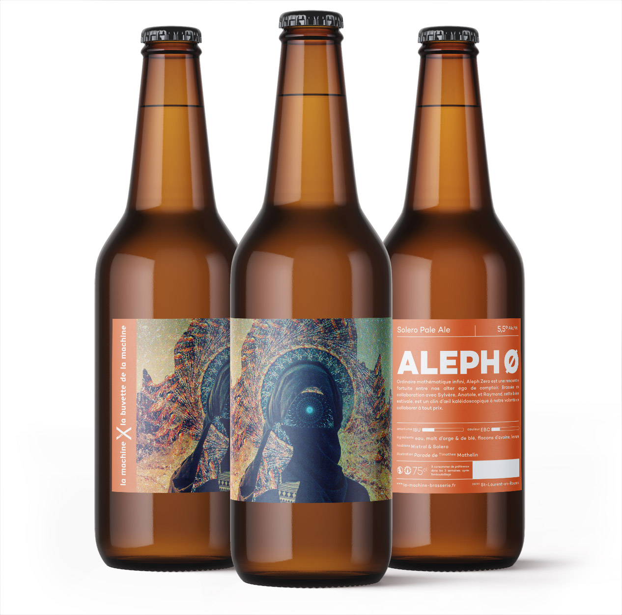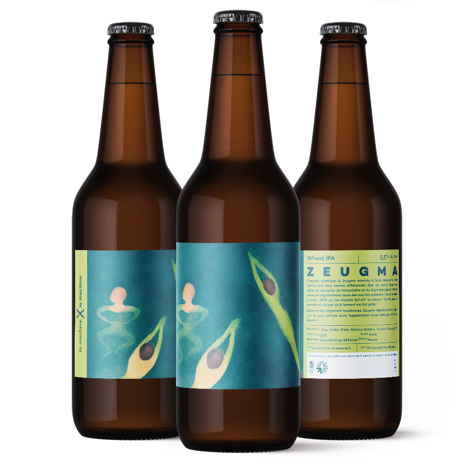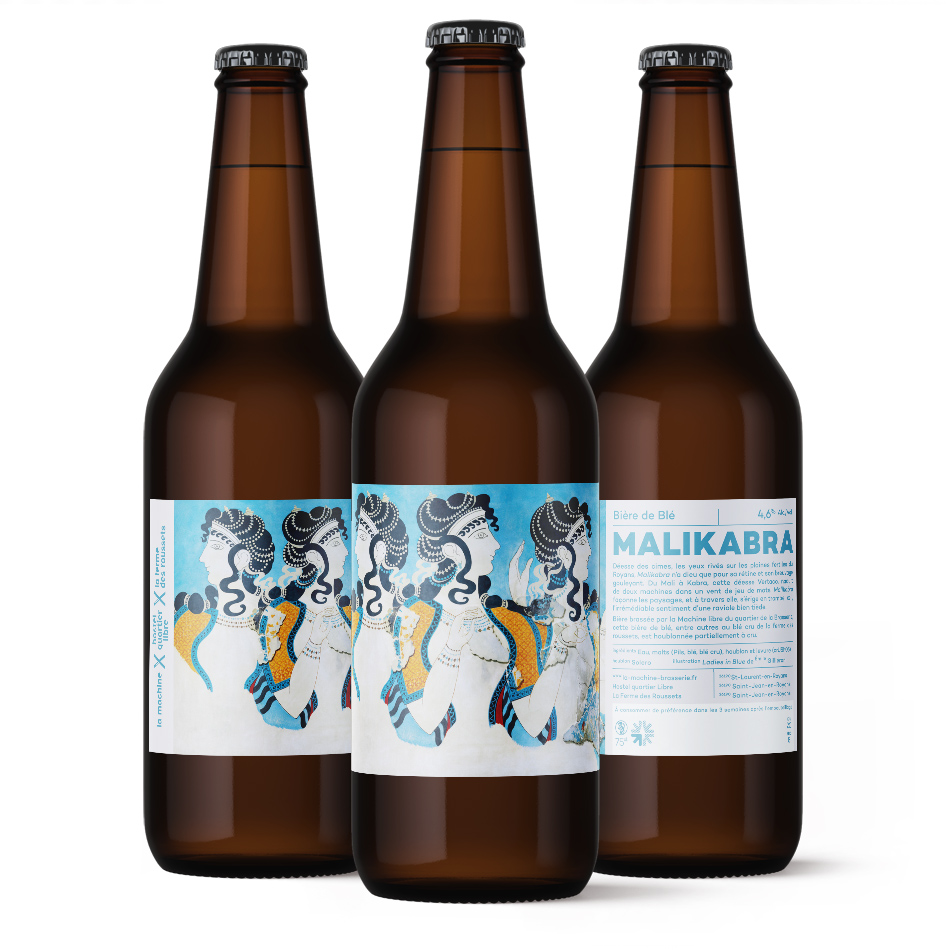 Pour les quatre bières de la gamme générale, nous avons fait appel à quatre illustrateurs : Sophie Della Corte pour TAAJ (la bière de blé), Fabrice Haes (coucou) pour MOCORII (la blonde), Owen Gent pour SEGGA (l’ambrée) et Thimothée Mathelin pour ROY (l’IPA).