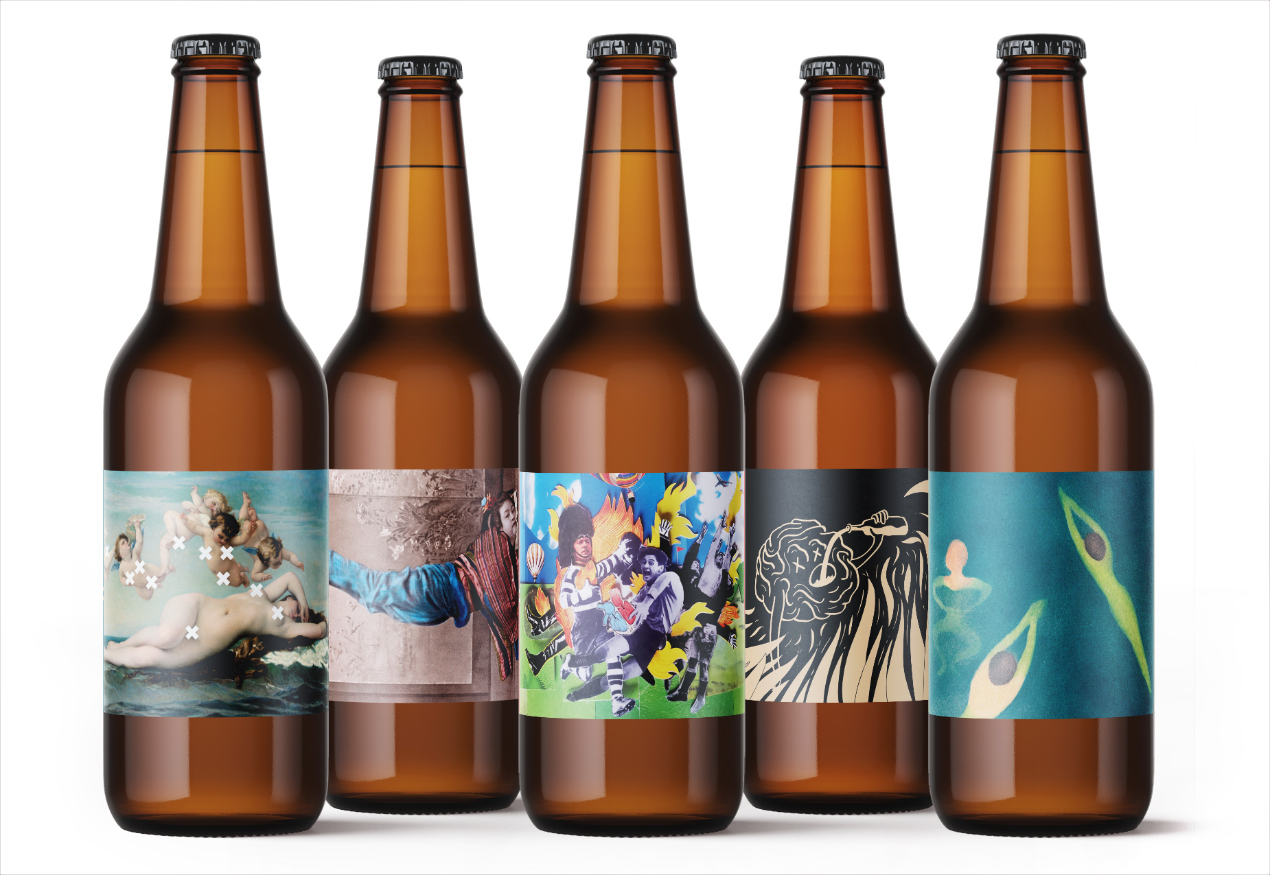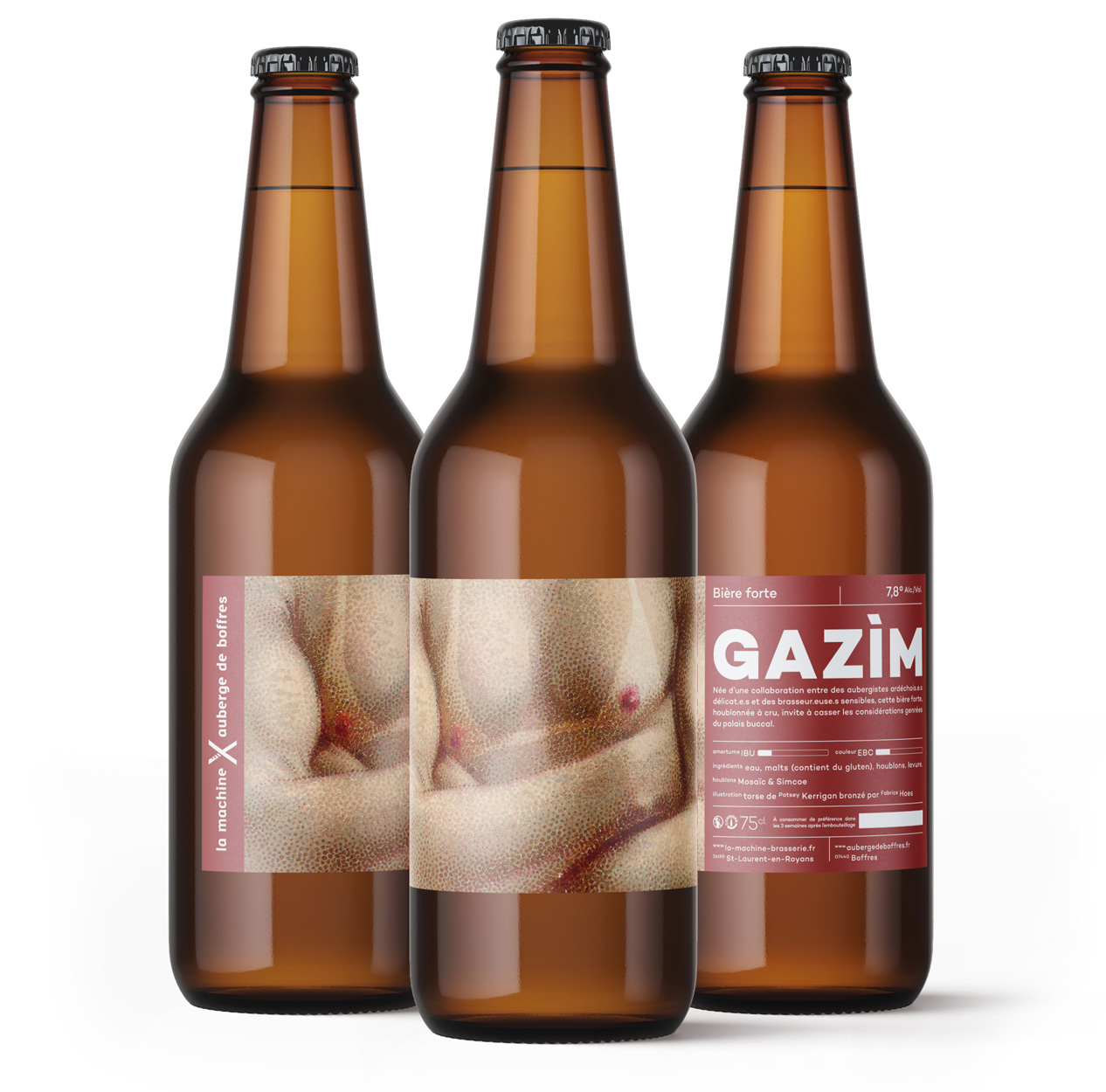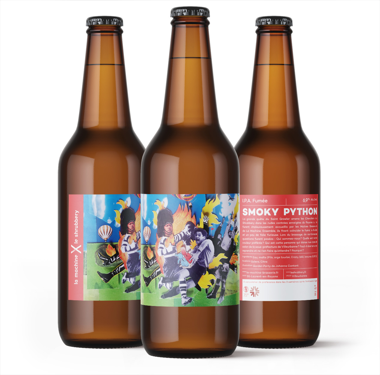 Pour les quatre bières de la gamme générale, nous avons fait appel à quatre illustrateurs : Sophie Della Corte pour TAAJ (la bière de blé), Fabrice Haes (coucou) pour MOCORII (la blonde), Owen Gent pour SEGGA (l’ambrée) et Thimothée Mathelin pour ROY (l’IPA).