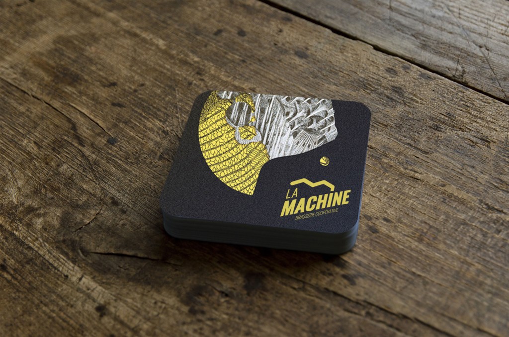 Création et réalisation du logotype, de la charte graphique, des étiquettes, sous-bock, affiches, signalétique, prise de vue photo…