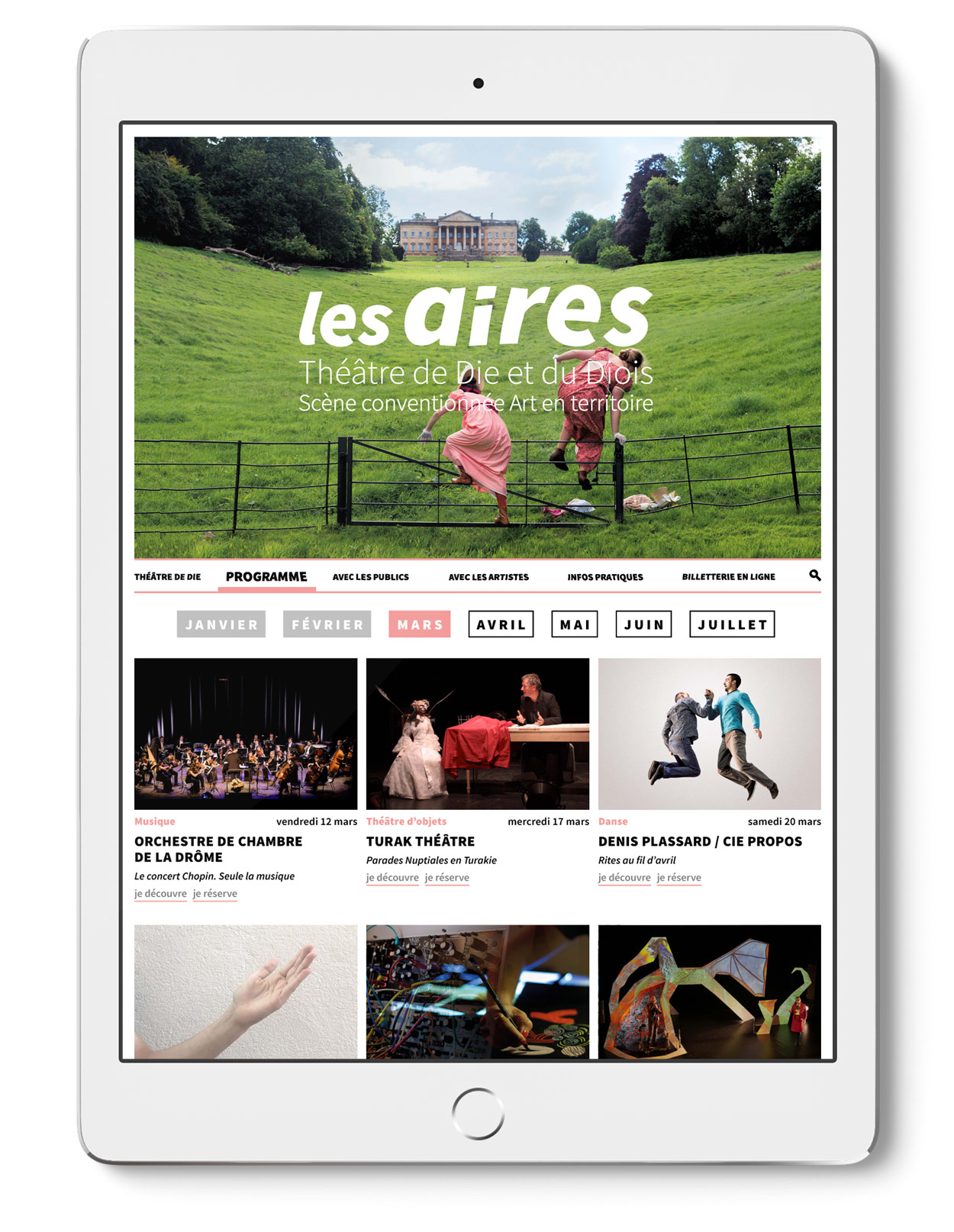 Les Aires, théâtre de Die et du Diois, est un lieu de rencontres, de réflexions, en dialogue permanent avec tout le territoire du département de la Drôme et de la région Auvergne-Rhône-Alpes, à travers une programmation pluridisciplinaire, exigeante, pour toutes et tous.